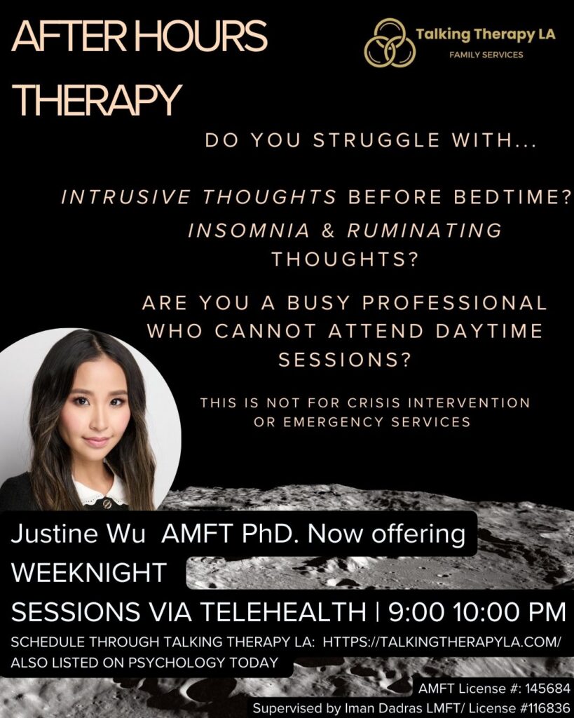 After hours therapy with Justine Wu, Ph.D – AMFT